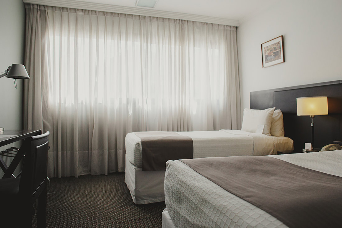Nuestras habitaciones dobles twin están situadas en la torre Prat y equipadas dos camas, escritorio de trabajo . Cuentan con vista hacia nuestro Patio-Jardín